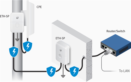 All Ubiquiti airMAX devices already have robust ESD protection built in, and adding the ETH-SP-G2 to the installation provides an additional layer of protection to the network.