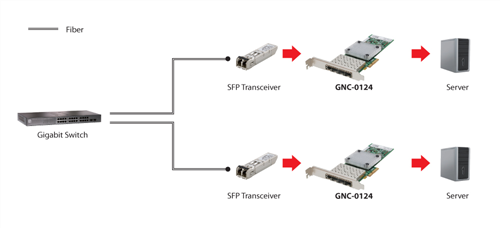 LevelOne GNC-0124 Gigabit Fiber PCIe Network Card, Quad SFP, 4x PCIe