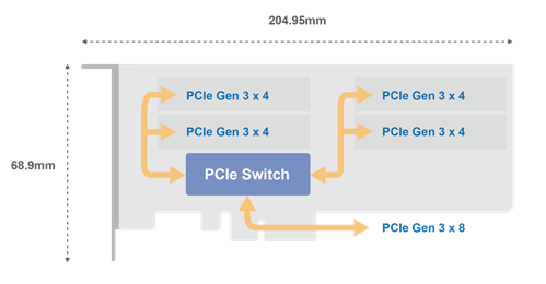 - Connector: 4 x M.2 2280 PCIe (Gen3 x 4) NVMe SSD slots