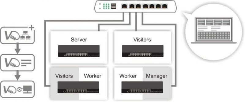 With VigorSwitch G2280, you can segment the physical local area network (LAN) into the smaller logical network (VLAN) and limits the traffic within that segment, this allows the administrator to control the LAN access and eliminates unnecessary network traffic. VigorSwitch G2280 supports various types of identifying the VLAN of traffic, including port-based, tag-based, protocol-based, and MAC-based. Voice VLAN and Surveillance VLAN are also supported so that traffic from an IP phone or an IP camera can be identified automatically without the need of specifying each of their MAC address, the respective QoS (Quality of Service) policy can be applied easily, so that the call and video quality can be optimized.