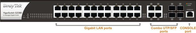 DrayTek G2280X 28-Port Gigabit Managed Switch, 24 Copper (RJ45), 4 SFP