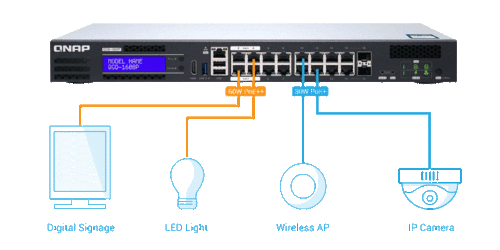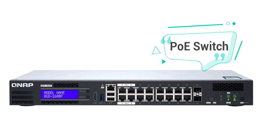 QNAP QGD-1600P-4G Hybrid PoE switch/NAS that enables NVR, router, AP controller, etc