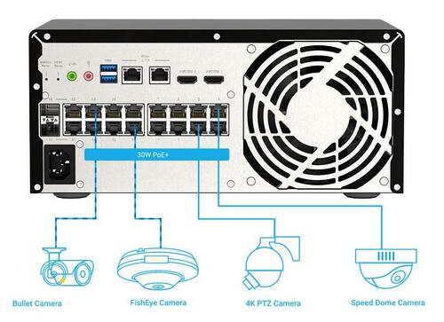 - PoE power: 15–30-watt Gigabit PoE capabilities to high-power IP cameras.