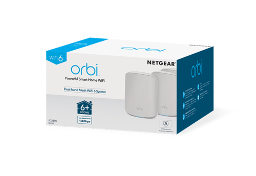 NETGEAR RBK353-100AUS Orbi Dual-Band WiFi 6 Mesh System, 1.8Gbps, Router + 2 Satellites