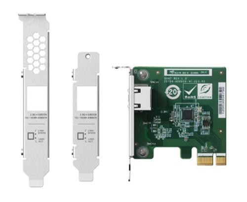 Single-port 2.5 GbE network expansion card Controller: Intel Ethernet Controller I225-LM Connector: RJ45 PCIe interface: PCIe 2.0 x1 Transmission rates: 2.5Gbps/1Gbps/100Mbps/10Mbps Supported by QNAP NAS operating systems: QTS 4.4.2 or later