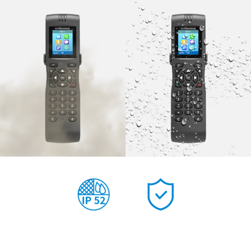 FIP16Plus is IP52 rated so will be protected from the sprays of water and dust. You can enjoy HD calls even when working in a dusty or humid environment.