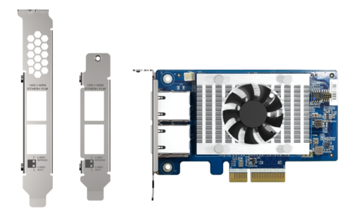 Low-profile bracket pre-installed; full-height and specialized (for selected QNAP NAS) brackets are bundled |