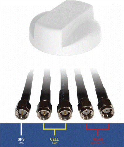 The Panorama low profile MiMo antenna range has been designed to support the latest generations of vehicular LTE routers. The antenna enclosure contains five isolated high performance antenna elements; two ultra-wideband elements covering 698-2700MHz support MiMo/diversity at cellular/LTE frequencies and two dual band elements covering 2.3-2.7 & 4.9-6GHz support MIMO/diversity operation for WiFi. The antenna also contains a high performance GPS antenna with an integrated 26dB gain LNA and high quality filtering to combat noise. The antenna does not require a metallic ground plane, and maintains a high level of performance even when mounted on a non-metallic surface.