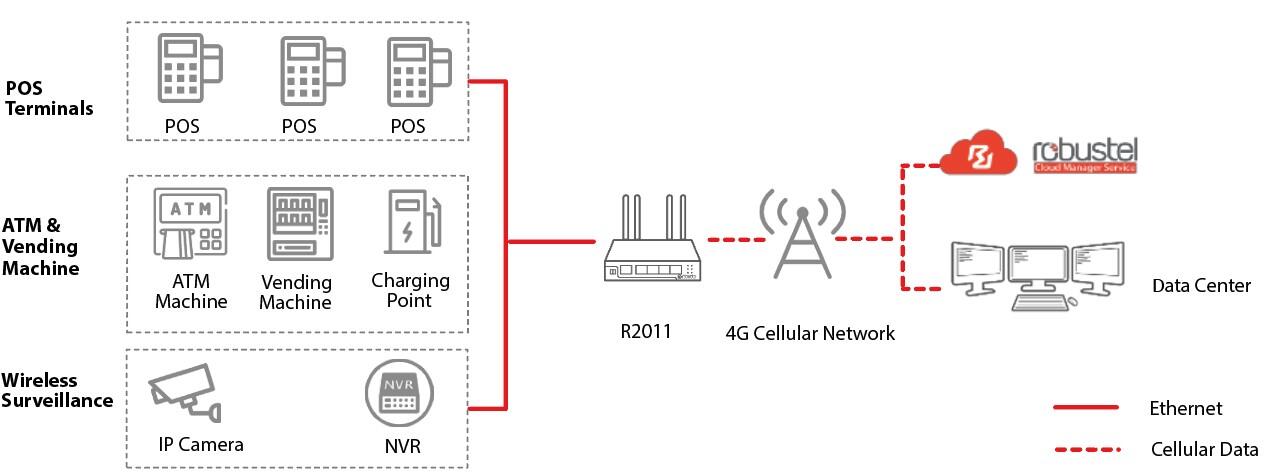 The Robustel R2011-A-4L is a high-performance industrial LTE Cat.4 router with five Ethernet ports. It also offers dual standby with dual SIM cards and a range of advanced features for IoT or M2M applications.