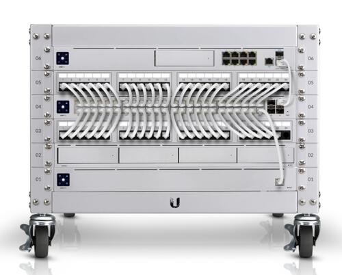 The Toolless Mini Rack (U Rack 6U TL) is a heavy-duty, 6U-sized device rack that can be easily assembled without tools. The U Rack 6U TL is equipped with a 24-port blank patch panel, lockable casters, and can house most rack-mountable Ubiquiti devices*.