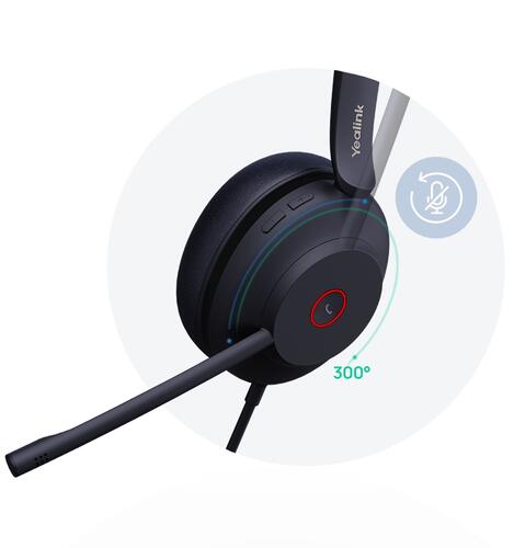 UH37 office headphone allows mute in two ways: by lifting the Mic-boom or by pressing the mute button. The boom's 300-degree rotation allows for left or right ear wear. This convenient and flexible design will let you feel more at ease when communicating