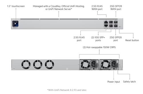 The Ubiquiti UniFi Gateway UXG Enterprise is a 25Gbps independent gateway with multi-WAN load balancing, 12.5 Gbps IPS routing, and redundant hot-swap PSUs.