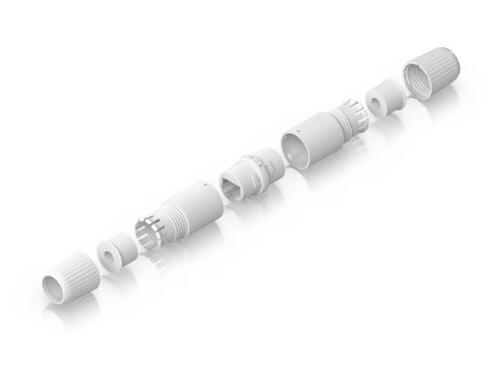 The Ubiquiti UniFi RJ45 Inline Coupler Outdoor 2-Pack are compact, weatherproof RJ45 couplers for extending Ethernet cables in outdoor installations.