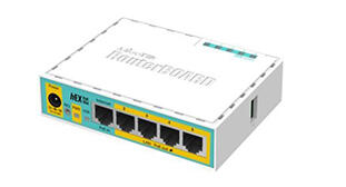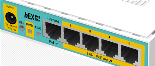 hEX PoE lite is a small five port ethernet router in a plastic case, it has a USB 2.0 port and passive PoE output.
